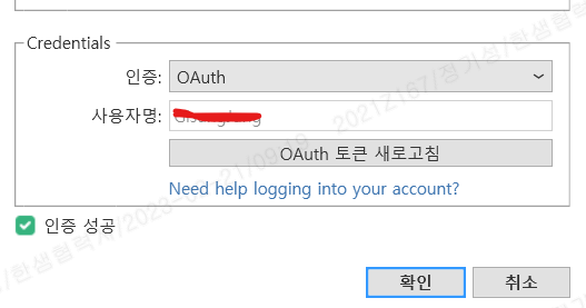 github에 로그인된 상태에서 인증 : OAuth 선택 -> 토큰새로고침을 클릭하면 사용자가 로드된다