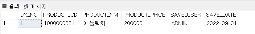 EXEC PRODUCT_INS_SP 1000000001, '애플워치', 200000, 'ADMIN';